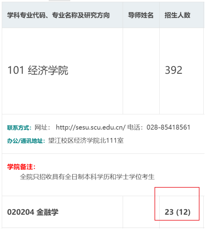 *图为四川大学经济学院金融学学硕2021年招生计划,其中23(12)分别代表总招生人数与推荐免试人数。