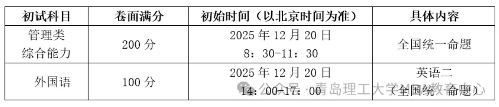 2. 初试科目与时间