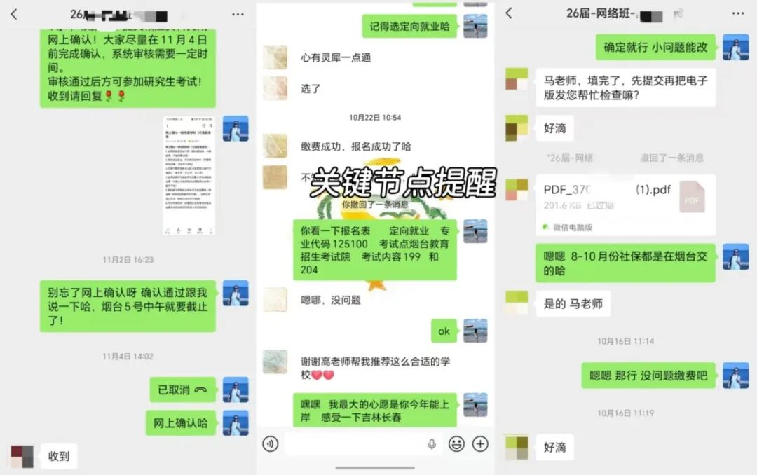 覆盖备考 + 报考全流程服务:不仅为学员提供周末课程学习指导,更针对考研报名关键环节 ——择校规划、网上报名、信息确认、准考证打印,安排专人全程跟踪核对,逐节点严格把关,确保每位学员的报考流程万无一失。